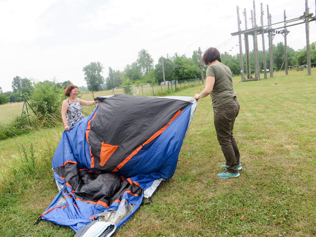 Ab-in-die-Zelte-Event 2015 stand bevor, Spannung wuchs, Erwartungen waren hoch. Und am 12.Juni war es soweit. Dieses Jahr hatte sich das Elternteam etwas ganz Besonderes ausgedacht. Es ging es los mit dem Familien-Rally um den Wölfersheimer See mit einer Landkarte und einem Fragebogen über Energie-Gewinnung. Im Programm dieser drei spannenden Tage stand auch weiter: Klettern im Hochseilbereich in 10 m Höhe, Floßbau und Floß-Rennen auf dem See, Bogenschießen im Fackelschein, Besuch des Wölferschemer Energie-Museums, Team-Event „Niedrigseil-Parcour“, Riesenschaukel mit einem Gurt in die 10 m Höhe und vieles mehr wie unser traditionelles Konzert, gemeinsames Grillen, Gitarren-Lieder am Lagerfeuer. Mehr als 60 Kinder und ihre Eltern nahmen daran teil und träumen schon bestimmt von dem nächsten Zelten im Sommer 2016.